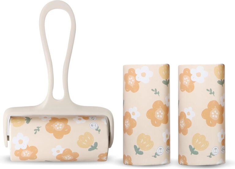 Flat Surface Lint Roller for Pet Hair Extra Sticky Lint Remover for Couch Clothes Furniture Pool Table Felt Lint Roller 1 T Handle with 4 Sticky Rolls (Daisy White)